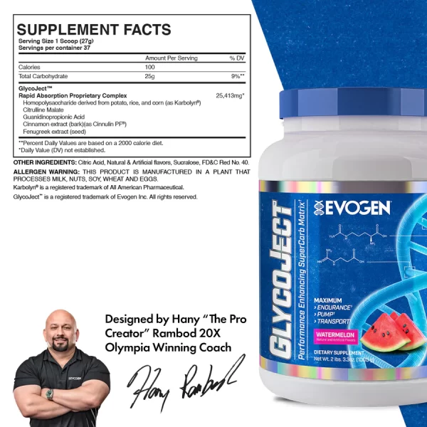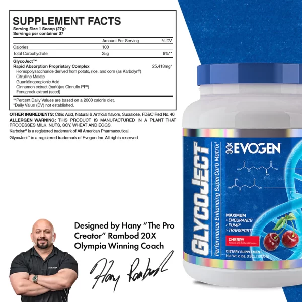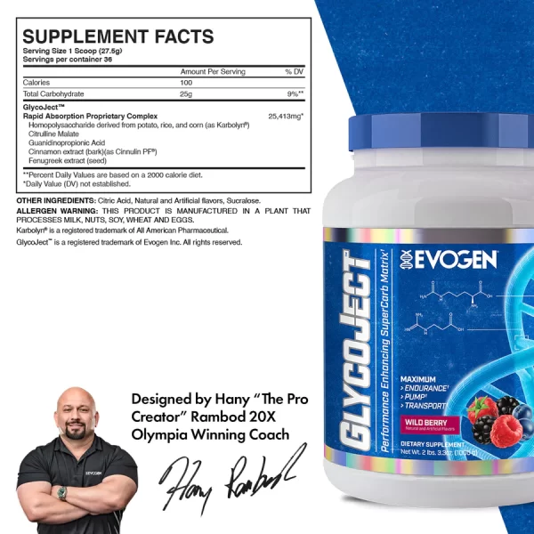 Introducing GlycoJect™ – Evogen Nutrition’s Elite Pre- & Post-Workout Carbohydrate Loading Solution. This unique, pre- and post-workout carbohydrate loading and nutrient shuttling formula is the perfect performance-booster for virtually any athlete!