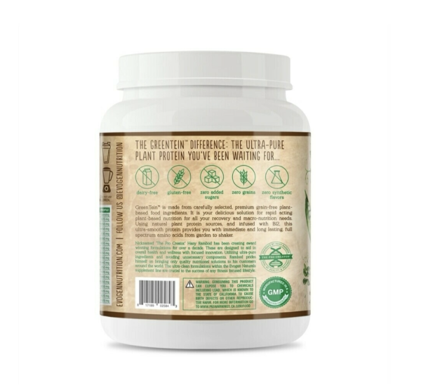 SUGGESTED USE: Evogen’s GreenTein™ is best used as part of a well-balanced diet that includes whole foods and other protein sources. Individual nutritional requirements may vary depending on gender, body weight, level of activity and exercise/training intensity.