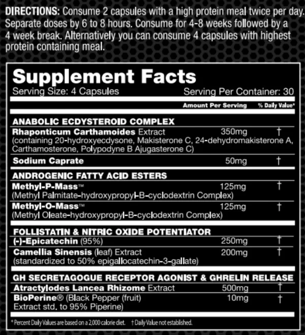 Our cutting-edge “secret sauce” begins with a strong 350mg dose of Rhaponticum Carthamoides, which supplies a diverse and powerful class of natural anabolic agents known as ecdysteroids. To improve nutrient uptake and potency, we’ve added sodium caprate — a novel absorption enhancer that works by increasing the opening of cellular tight junctions.*