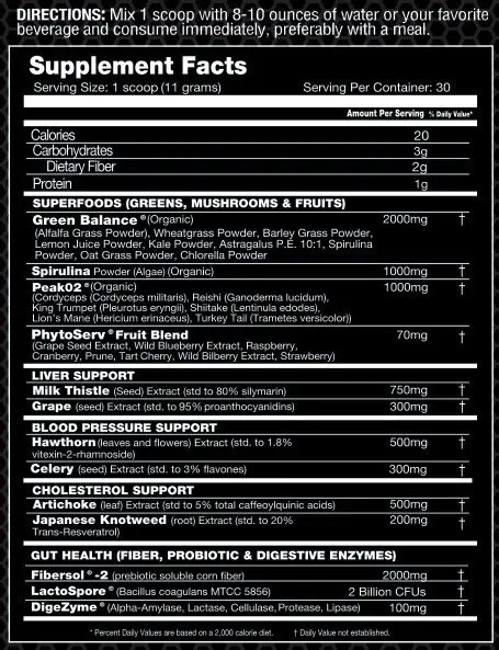 Superfoods is a blend of phytonutrient-packed greens, mushrooms, and fruits. This includes the premium-branded Greens Balance, PeakO2, and PhytoServ Fruit Blend (which provide a natural and powerful source of natural antioxidants to support the body from the harmful effects of oxidative stress). Our Superfoods blend also includes a full 1,000mg of Spirulina, a unique blue-green algae that is incredibly nutritious and offers numerous benefits.