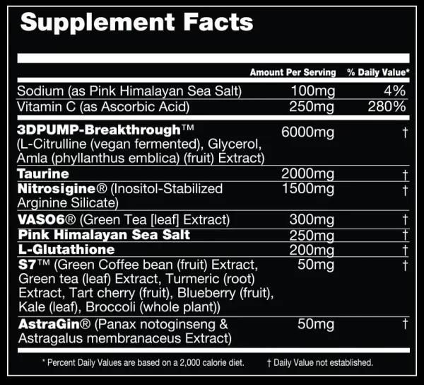 Priming the pump in VasoMax is the standout, breakthrough nitric oxide and cell volumizer — 3D Pump. 3D Pump contains a patent-protected mixture of L-Citrulline, Glycerol, and phyllanthus emblica to encourage nitric oxide production, blood flow, and cellular swelling.