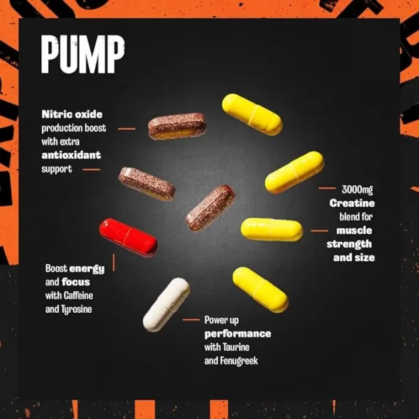As a “core” or foundational pre workout supplement, take a single pack 30 – 45 minutes before you lift, preferably on an empty stomach. As each pack also contains your full, daily dose of creatine, take Pump every day for optimal results. On non-training days, you can take the pack around the same time as you would if you were training. You can remove the red capsule (stims) on off days, or if you train at night.